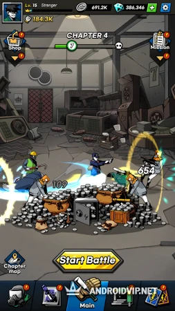 Изначально в вашей команде будет всего лишь один герой, с которым уже отправитесь сражаться с первыми противниками. Каждый персонаж атакует врагов самостоятельно, вам нужно всего лишь следить за процессом. Но немало времени понадобится уделить на пополнение вашей команды разными бойцами, где каждый из них обладает уникальными способностями.