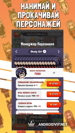 Косплей-кафе уже готово к открытию и для начала вам необходимо нанять на работу первых сотрудников и начать изготавливать кондитерские изделия для продажи. Прокачивайте характеристики своих работников, поднимайте их уровень и улучшайте репутацию косплей-кафе, чтобы привлечь больше посетителей и инвесторов для дальнейшего развития.