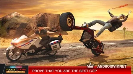 Police vs Thief MotoAttack - представьте, что кучка самых опасных преступников в вашей стране смогли совершить побег из тюрьмы, и теперь начинают угрожать мирным жителям. Главный герой - полицейский, следовательно, его задача следить за порядком в стране. Но на данный момент спокойствие было нарушено, и с этим нужно что-то делать.
