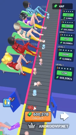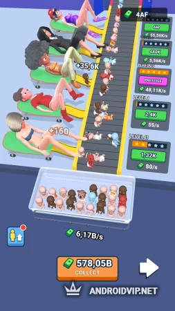 Увеличивайте скорость рождаемости, размещайте в зале больше персонажей и улучшайте уровень рождаемости делая его всё стремительнее. Принимайте в родильном зале женщин разных рас, инопланетянок, демониц и не только. Место закончилось? Пора открыть ещё один родильный зал и снова начать добавлять новых персонажей пока вы не станете зарабатывать миллионы.