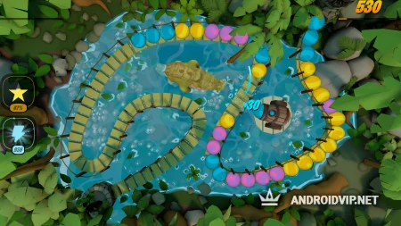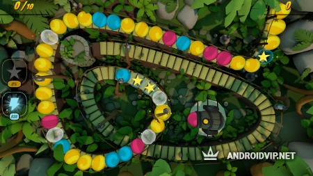Добро пожаловать в дикие джунгли, куда приземлилась куча знаменитостей для прохождения крутых испытаний. Вам предстоит выполнять десятки интересных миссий стреляя в разноцветные шарики, выигрывать звёздочки и заодно помогать знаменитостям выбраться из джунглей. Играть здесь очень просто, перед вами будет цепочка разноцветных шариков, которые постоянно двигаются - вам необходимо остановить цепочку и очистить поле от нужного количества шариков.