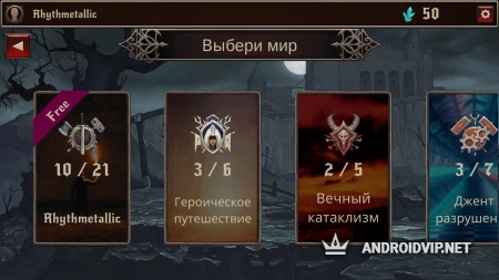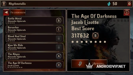 Зачастую плейлисты музыкальных аркад наполнены поп-хитами и электронной танцевальной музыкой, однако данная игра ломает все стереотипы, ведь здесь вы найдёте музыку в жанрах хэви-метал, трэш-метал, пауэр-метал, блэк-метал, дэз-метал и джент. Выберите один из предложенных миров и подходящий музыкальный трек для прохождения ритм-испытания.