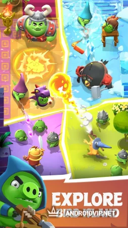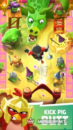 Angry Birds Kingdom - новая игра из всем известной серии про вечную войну птичек и свиней. На этот раз проект выполнен в RPG стиле. Вам предстоит защищать яйца и всё птичье королевство от атак зелёных хрюшек.