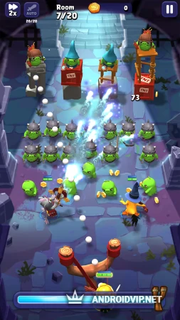 Игровой процесс будет состоять из быстрых боёв длительностью 10-15 секунд. Отражайте волны врагов и зарабатывайте ценные награды. Эти награды помогут в улучшении ваших построек и в целом в укреплении королевства. В ответ на претензии свиней у вас, как и прежде, есть мощная рогатка, в которую вы будете заряжать птиц, и те, используя свои умения, будут разносить хрюнделей, словно кегли.