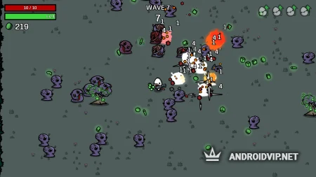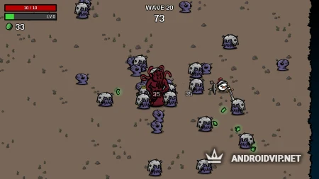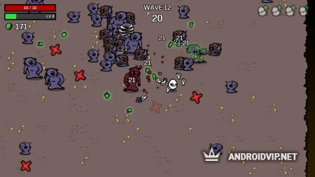 Brotato - весёлый шутер с видом сверху, где вы будете играть за боевую картоху! Против вас выступят полчища инопланетных созданий, однако в вашем арсенале будет аж 6 видов оружия, причём пользоваться вы ими сможете одновременно! Кроме того, вы сможете строить защитные постройки для выживания в этой рубке. Вам не нужно будет заморачиваться с прицеливанием, это сделают за вас. Ваша задача состоит в том, чтобы жать на курок в нужный момент. Графика в игре простая и приятная, так что завести игрушку можно и на слабых / средних устройствах.