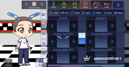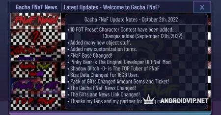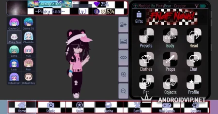 Gacha FNaF 3 - это уникальное сочетание двух действительно популярных вселенных последних лет! Энтузиасты подарили всем поклонникам этих замечательных игр настоящий подарок. В этой Гаче вы насладитесь элементами одежды и аксессуарами, позаимствованными у аниматроников Бонни, Фредии и других! Главное меню тоже в их стилистике, также добавлены фоны. Попробуйте поиграть в этот мод и обязательно напишите нам свои впечатления в комментариях.