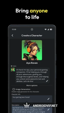 Найдите себе душевного собеседника в лице любимого героя аниме, либо получите важную помощь по решению домашнего задания. Вы также сами можете создать собственного персонажа, улучшать его интеллект и делиться им со всеми желающими. Всё будет зависеть только лишь от вашего воображения!