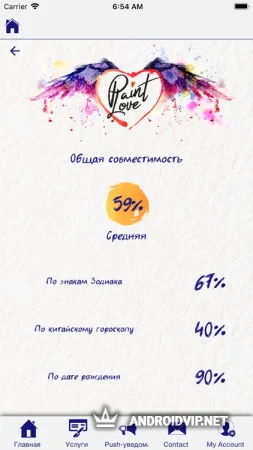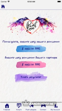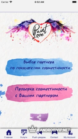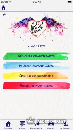 Paint Love - это уникальное в своём роде приложение, которое позволит вам узнать насколько вы со своей половинкой подходите друг другу. Благодаря точно анализу Пэйнт Лав проанализирует вашу пару на основе ваших знаков зодиака, восточном гороскопе, а также влиянии чётных и нечётных дат рождения.