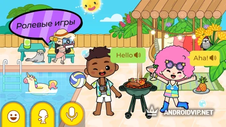 Конечно же, здесь можно будет покупать и менять наряды, аксессуары для своего персонажа. Контактируй с другими героями игры и открывай скрытые сюжеты, либо сделай так, чтобы другие персонажи совершали забавные действия! Море возможностей ждут тебя в Аха Ворлд!