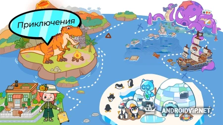 Aha World - весёлая и увлекательная игра в стиле Toca Boca! Познакомься с харизматичными персонажами, красивыми локациями и милыми животными! Огромный город с бесчисленными возможностями открыт для тебя: хочешь научиться готовить еду? Тогда добро пожаловать в ресторан Sky Lounge! Хочется перекусить на свежем воздухе? Отправляйся в центральный парк! Купайся в море, парься в бане, встреться с пингвинами на северном полюсе и даже... своими глазами посмотри на динозавров! А для тех, кто хочет чего-то более ответственного, то для таких игроков тоже найдётся дело, например, вы можете помощь полицейским с ловлей преступников!