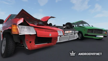 С самого начала вам будут доступны несколько моделей машин, где каждая из них имеет свои уникальные характеристики. Каждый автомобиль ведёт на дороге себя по-своему, и в основные отличия заключаются в разных подвесках, весах, габаритах и мощностях. К тому же при столкновениях каждая деталь автомобиля разрушается, и в зависимости от силы удара, нескорые элементы могут сильно помяться или даже оторваться.