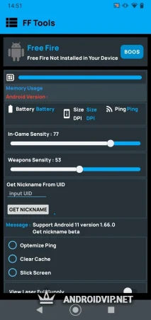 FF Tools - это простая в пользовании, но очень полезная программа, которая позволит значительно улучшить производительность во время игры в популярный шутер Free Fire. Данное приложение отлично подойдёт вам, если играете не на достаточно мощном устройстве, или же хотите внести уникальные настройки в управление!