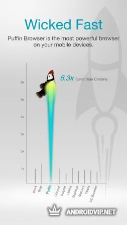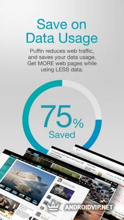 Puffin Web Browser - это удобный и скоростной браузер на собственном движке, созданный специально для мобильных устройств. Он имеет высокую скорость загрузки любых страниц и их содержимого, за что отдельная благодарность специальному движку. Благодаря ему, можно не только быстро и комфортно находить нужную информацию, но и наслаждаться полноценными страницами, будто бы пользователь сидит с компьютера. Разработчики сравнивали скорость загрузки с различным содержимым (видео, игры, картинки, текст) с у разных мобильных браузеров, и показатели порадовали. Также реализована поддержка флеш-игр и видеороликов.