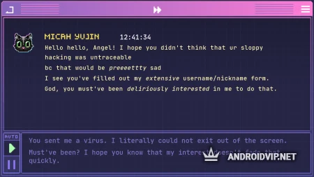 Действия игрового процесса протекает в окне виртуального чата, где происходит общение между главными героями. Сюжет напрямую зависит от всех действий и выбранных ответах в диалогах. Разработчики предусмотрели много интересных мини-игр, прохождение которых позволяет заработать валюту. Она в свою очередь нужна для приобретения стильной одежды, драгоценных аксессуаров и подарков. Вы сможете создать интересные образы, проводить время за решением необычных задач, взламывать системы вашего оппонента и следить за развитием сюжета оказывая на него прямое влияние.