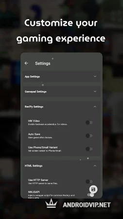 JoiPlay - удобный и функциональный эмулятор для запуска игр Ren’Py, RPG Maker XP/VX/Ace/MV и HTML 5 на вашем устройстве. Приложение получило простой в использовании интерфейс, что делает использование лаунчера максимально удобным.