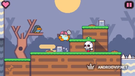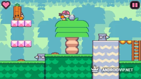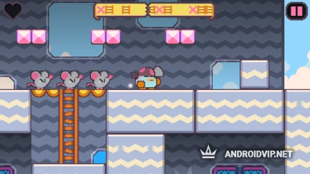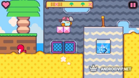 Для прохождения уровня необходимо добраться до специальной отметки в конце локации. Вам будут встречаться разные преграды, ловушки, потайные ходы, алмазы и увлекательные головоломки. Игра получила приятную пиксельную картинку, очаровательных персонажей, динамичный геймплей и удобное управление.