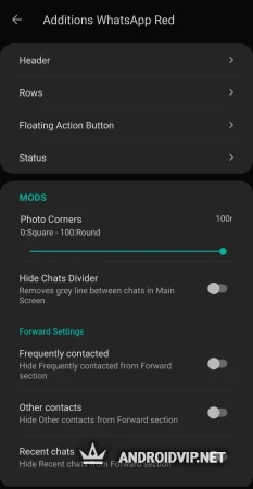 WhatsApp Red - это модификация популярного мессенджера, расширяющая возможности пользователя, отставляя стандартные функции. Если вы пользуетесь оригинальной программой, но хотите изменить немного интерфейс, расширить размер загружаемых файлов, или получить дополнительные настройки профиля, то данное приложение однозначно вам подойдёт!