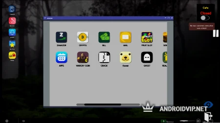 Механика игры довольно многогранная, где вы сможете управлять главным героем от первого лица, исследовать ближайшие локации, и следить за вашим кафе напрямую. Старайтесь привлекать как можно больше клиентов, для этого можно устанавливать на компьютеры новые игры, программы, улучшать сами ПК, и увеличивайте их количество.