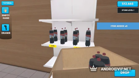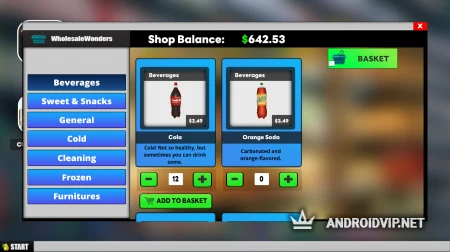 Чтобы приступить к продажам товаров, в первую очередь их нужно закупить на специальном сайте. Для этого следует использовать компьютер, расположенный в подсобке. Доступно множество позиций совершенно разного качества, которые отличаются объемом и стоимостью. На начальных этапах не стоит слишком тратиться, ведь помимо товаров придется покупать полки и специальное оборудование.
