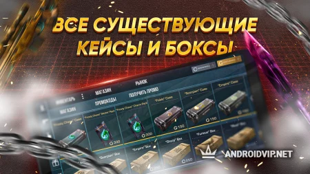 Симулятор включает в себя огромное количество разнообразных кейсов и боксов, которые доступны в оригинальном шутере. Для получения денег вам предстоит играть в увлекательные аркады и как можно быстрее нажимать на дисплей. Потратить ее, естественно, можно на новые кейсы с крутыми скинами на оружие, перчатки, ножи и наклейки.