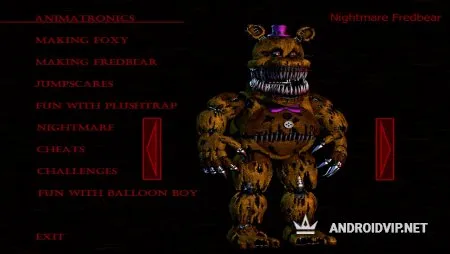 Five Nights At Freddy's 4 – инди-хоррор игра на Андроид в жанре "Point and click". созданная Скоттом Коутоном. При запуске финальной главы становится заметно, что игра изменилась до неузнаваемости. По сравнению со второй и третьей частью ФНаФ 4 получила собственный загрузочный экран, выглядит более зловеще и угрожающе. Изменения не коснулись мини-игр, что немного огорчает. Они выполнены в привычном стиле, но дополнены диалогами.