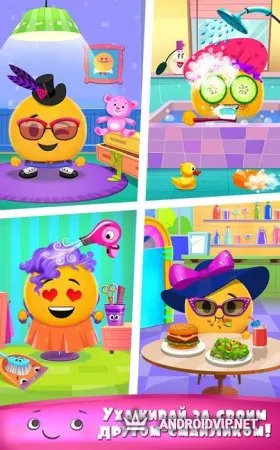 Жизнь смайла – Мой друг эмодзи - эта игрушка перенесёт тебя в волшебный город смайликов. И, конечно же, подарит один из них тебе! Выбирай любого - весельчака или хмурого, застенчивого или харизматичного. Ухаживай за ним, корми, делай водные процедуры и играйся со своим новым необычным другом. Кроме этого, можно сделать из него неповторимого модника, подобрав отличные наряды. Коллекционируй специальные карты и получай интересные бонусы, развлекайся в мини-игры и многое другое.