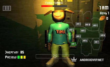 Геймплей развивается с видом от первого лица, где вы будете сидеть в комнате главного героя и осматриваться по сторонам. С обеих сторон предусмотрены две двери, которые можно закрывать. Вы также можете включать свет над дверьми, но старайтесь делать это не так часто, так как расходуется драгоценная энергия. Естественно, протагонист получит доступ к камерам наблюдения через которые нужно отслеживать перемещение Тимохи.