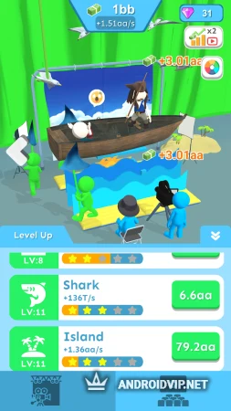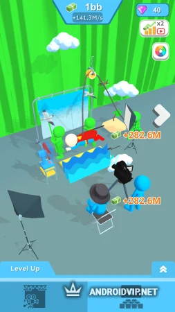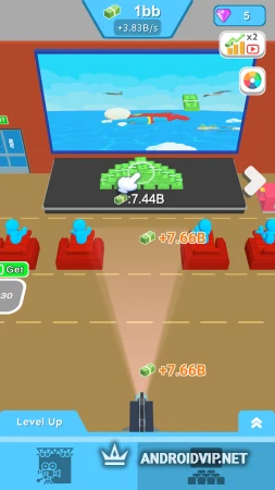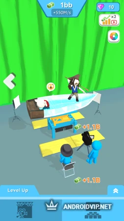 Геймплей выглядит просто и увлекает с первых минут. В качестве фона будут использоваться самые разные пейзажи, благодаря которым можно создавать удивительные сцены, наполняя их различными реквизитами. Все объекты на локациях можно улучшать, что повысит ваши доходы в секунду и позволит приобрести новые полезные предметы. Деньги необходимо собирать как со съемочной площадки, так и с кинозалов. Улучшение кинотеатров позволит принимать больше посетителей и увеличивать стоимость билетов.