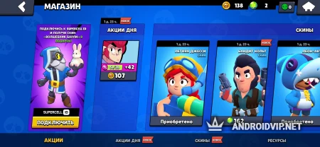 Главным преимуществом данной приватки является наличие соревновательного режима, где можно зарабатывать кубки, полноценный боевой пропуск и игра по сети с друзьями. Игрокам будут доступны все самые новые герои и уникальные скины для них, которые уже открыты, нужно лишь получить доступ к бравлеру. Вы сможете захватывать кристаллы, принимать участие в столкновениях кланов, командных событиях и прочих игровых режимах, где можно заработать деньги и ящики.