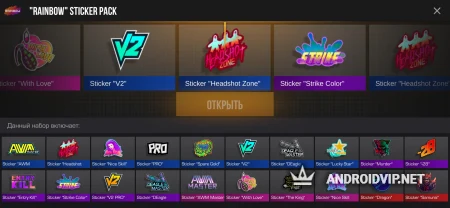 Открывайте кейсы и выбивайте редкие виды ножей, наклеек и оружия. Открытие кейсов происходит максимально реалистично, а полученные предметы можно просматривать со всех сторон. Отличительной особенностью данной приватки является возможность кастомизации оружия. Доступно 4 места, куда можно приклеить стикеры и тем самым сделать внешний вид оружия более уникальным.