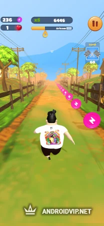 Игровой процесс представлен в виде классического раннера, где нужно управлять персонажем, прыгать через автомобили и миновать иные преграды. Попутно, следует собирать цифровую валюту, подбирать бонусы и прокачивать уровень главного героя. Игра делится на уровни, где следует успешно достигать финишной черты. Сделать это будет непросто, учитывая большое количество опасных преград и движущиеся навстречу транспортные средства. На каждый забег выдается несколько жизней и если потратить их, то придется начинать уровень с самого начала.