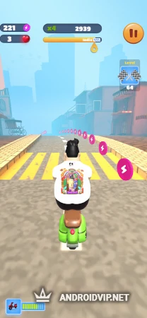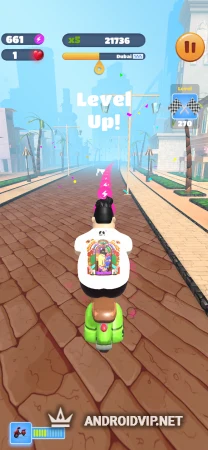 Валюта, собранная во время забегов, может быть потрачена на изменение внешнего вида подопечного, а также приобретение полезных усилителей. Например, мотоцикл вначале уровня даст приятное ускорение и упростит прохождение сложных этапов игры. Не обошлось без классического магнита, притягивающего валюту и временного щита, наделяющего персонажа неуязвимостью.