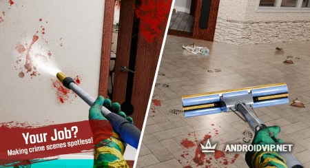 Перед тем как отправиться на дело, необходимо собрать все необходимое оборудование. Исследуйте собственный дом, возьмите только самое необходимое и отправляйтесь на место преступления. Процесс очистки проходит с видом от первого лица, где игрок самостоятельно управляет персонажем и выполняйте грязную работу. Различные виды щеток, химические средства и уникальная швабра помогут вам скрыть улики и заставить детективов с полицией поломать голову.
