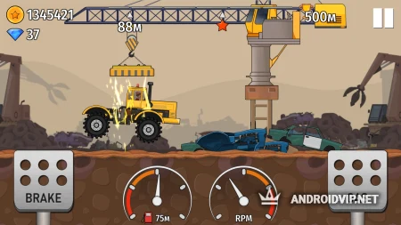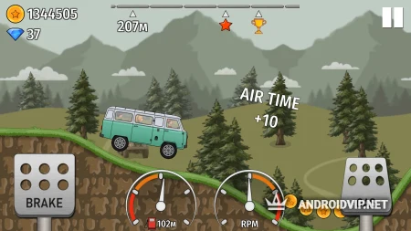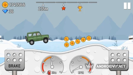 Изначально в вашем гараже будет только начальный вид транспорта, на котором вы уже сможете выехать на ваш первый заезд. Проехав как можно дальше и собрав монеты, вы сможете прокачать вашу машину, поставив новые модули, улучшающие характеристики. Также есть возможность открыть другие транспортные средства, в виде машин, тракторов, грузовиков и мотоциклов.