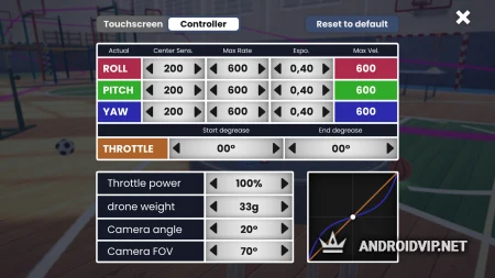 Для управления дроном есть несколько способов, к примеру вы сможете летать при помощи элементов управления на экране, или же подключить геймпады при помощи Bluetooth или кабеля. Также есть немало настроек по чувствительности, весу дрона, положении камеры и многое другое, что позволит попробовать различные условия.