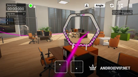 С самого начала вы сможете попробовать полетать на квадрокоптере по более простым локациям, где есть различные препятствия в виде колец, стен, обручей и так далее. К примеру есть возможность полетать по спортзалу, офису и другим помещениям, где есть много маленьких деталей. Все они расположены по сложности и даст возможность хорошенько потренироваться в выполнении маневрах.
