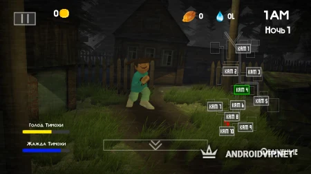Чтобы не умереть и пережить 5 самых ужасных ночей в вашей жизни, необходимо: колоть дрова и топить печку, готовить вкусные пирожки и собирать их, своевременно кормить Тимоху и не забывать спускаться в подвал за солеными огурчиками. Наблюдать за передвижениями Тимохи мы будем через камеры, расположенные в 10 различных помещениях. Как только вы заметите его след, тут же включайте свет, закрывайте двери и не позволяйте ему добраться до вас.