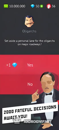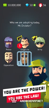 Перед началом игры вы сможете выбрать одну из шести фракций, где условия и сложность захвата власти отличается. После этого вам сразу же предстоит начать захватывать контроль над всеми направлениями государства. Подкупайте армию и полицию, чтобы обеспечить надежную защиту, держите на коротком поводку олигархов, полностью задавите оппозицию и конечно же позаботьтесь о вашей стране как о семье.