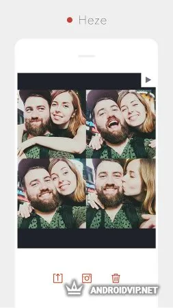 Помимо широкого выбора фотофильтров, пользователи имеют возможность регулировать степень их наложения, контролируя «натуральность» полученных фото. После применения фильтра можно предварительно посмотреть результат. Таймер позволяет снимать динамичные сцены с участием пользователя. Для этого нужно зафиксировать смартфон и выставить нужный временной интервал. Макеты для создания коллажей Photo Booth представлены в трех вариантах: для узких фотографий, изображений размером 3*4 и 1*1. Ватермак является финишным штрихом при создании снимков. В настройках его можно отключить или выбрать более привлекательный вариант надписи.