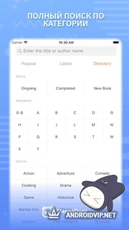 Разбивка по категориям значительно упрощает моих нужных рассказов, а встроенный поиск работает в разделах: популярный, последний прочитанный рассказ и каталог всех произведений. Книжная полка включает в себя прочитанные истории, те, которые понравились вам больше всего и сохраненные в память устройства. Все рассказы уникальны, многие переведены на русский язык и включают в себя иллюстрации.