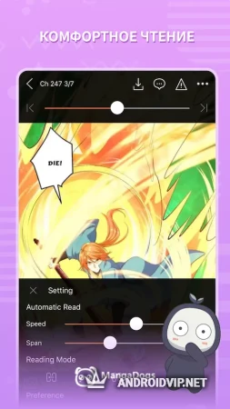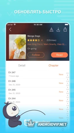 Manga Dogs - приложение для чтения манги в режиме реального времени. Пользователям доступно множество источников на русском, английском, немецком и других языках с бесплатным чтением без ограничений по времени.