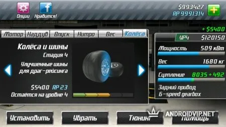 На заработанную игровую валюту в Drag Racing Classicможно приобретать различные автомобили или же прокачивать уже имеющуюся. В игре более 50-ти лицензированных машин, и все они разделены на несколько классов и у каждого из них есть группа определенных моделей. Самым главным улучшением является двигатель, но вы также можете обратить внимание и на оформление своей машины: изменить цвет, сменить диски и многое другое.