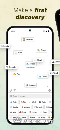 Начать игру предстоит с таких элементов, как: вода, огонь, земля и ветер. Необходимо перетаскивать их на игровое поле и объединять, чтобы получать совершенно новые элементы. По словам разработчиков, их игра насчитывает невероятное количество всевозможных комбинаций, свыше 100 миллионов.
