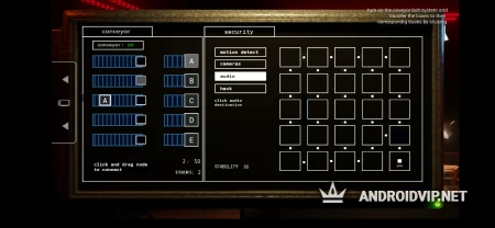 Рабочая панель позволяет не только управлять перемещением коробок по ленте, но и включает в себя камеры наблюдения. Чем чаще вы будете пользоваться системами безопасности, тем менее стабильны они становятся. У вас также будет фонарик, которым можно подсвечивать темные участки склада и просматривать двери, откуда могут появиться жуткие металлические игрушки. Продержитесь пять ночей и не сойдите с ума в этой безумной хоррор-игре.