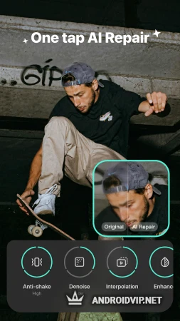 Восстановлений изображений может быть выполнено с помощью следующих режимов: классический, восстановление видео в одно нажатие и режим AI. Программа также способна изменять разрешение фотографий без потери качества. Оригинальные фотоснимки могут быть улучшены от разрешения 1080, вплоть до 4K. Одной из интересных функций является возможность стабилизации отснятых видеороликов, даже самых шатких и поврежденных. Готовый результат сможет приятно удивить.