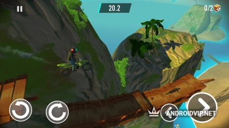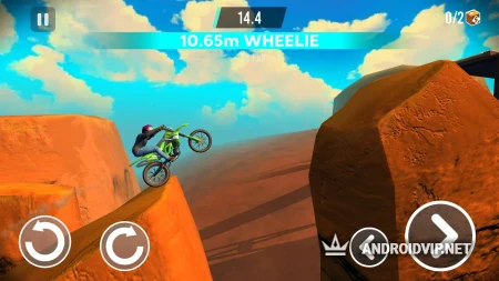 Игроков ждет большой выбор мотоциклов, трасс и трамплинов, предназначенных для выполнения головокружительных трюков. Начните игру с простого мотоцикла и заработайте денег на более мощный и крутой байк. Нужно не просто проходить трассы, наполненные преградами, но и выполнять интересные трюки, за что игрок будет награжден валютой и очками опыта. Постепенно вам будут доступны новые локации и мотоциклы.