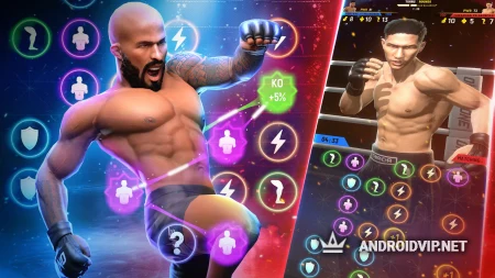 Всего доступно более 20 легендарных бойцов, каждый из которых имеет за своими плечами немало наград и огромный опыт выступления в боях без правил. Выбирайте наиболее подходящего спортсмена, настраивайте его внешний вид, боевой стиль и прокачивайте доступные навыки. Вы будете видеть не только разноцветные фишки, но и динамичные сражения с опасными приемами, реалистичными эффектами и соответствующим звуковым сопровождением. Попробуйте стать звездой боев без правил, одолейте всех противников и займите наивысшее место в профессиональной мировой лиге.
