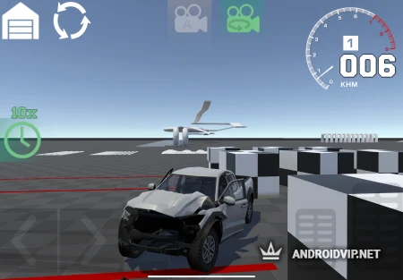 Для управления используются стрелочки по краям дисплея, отвечающие за повороты и регулирование скорости. Из дополнительных фишек стоит отметить наличие замедления времени, что дает более подробную картину разрушения тех или иных частей автомобиля при столкновении с преградами.