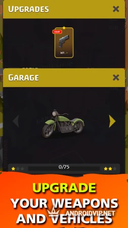 В отличие от многих аналогов, в данной игре передвигаться предстоит не на своих двоих, а на мотоцикле. Он станет и защитником, и верным помощником. С его помощью вы будете быстро перемещаться по заражённым территориям, собирать ресурсы, расстреливать зомби и убегать от них. В дальнейшем игрок сможет пересесть с мотоцикла на мощный автомобиль, окруженный броней и пулеметами.
