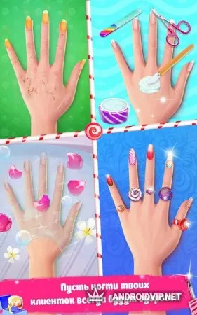Сладкий маникюр – Сахарная мода - просто замечательно, ведь вы смогли открыть собственный маникюрный салон! Самое время начинать работу. Ваша задача – выполнять все просьбы приходящих клиенток. Создайте для них прекрасный маникюр, который будет приковывать к себе взгляды. Проявите свою фантазию в создании яркого и неповторимого дизайна, а также у вас есть возможность создавать различные вкусные украшения для девушек.